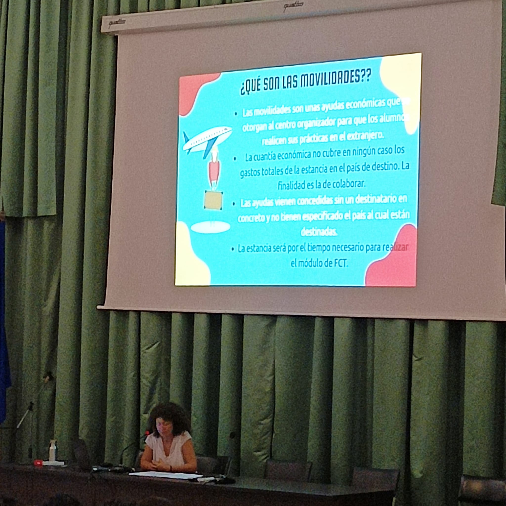 Esta jornada informativa sirvió para dar a conocer las características del programa Erasmus+, anunciar y explicar la próxima convocatoria de movilidades que se publicará en el centro el día 17 de octubre para la selección de candidatos, y difundir los resultados obtenidos en anteriores proyectos.